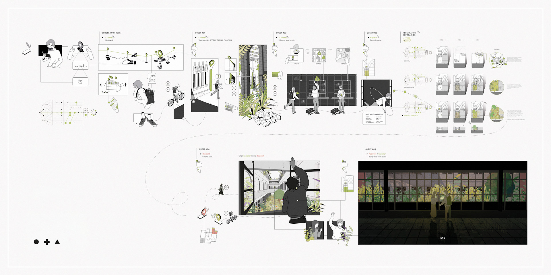 With guided citizen actions through destructive guerrilla greening and the participation of nature’s force acting on the imperfect relics, this proposal is an opportunity for citizens to engage in the city-making process for their well-being and sense of belonging. It is also a way to acknowledge and encourage an understanding of our entangled existence with nature, to build up a collaborative effort to develop a biodiverse and climate-resilient city.