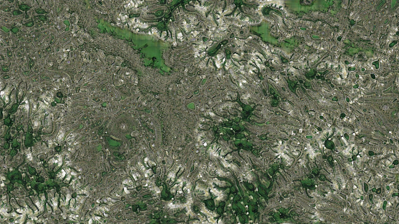 An eroded morphology visualisation of the moss growing pattern over East London considering pollutants as a food source.